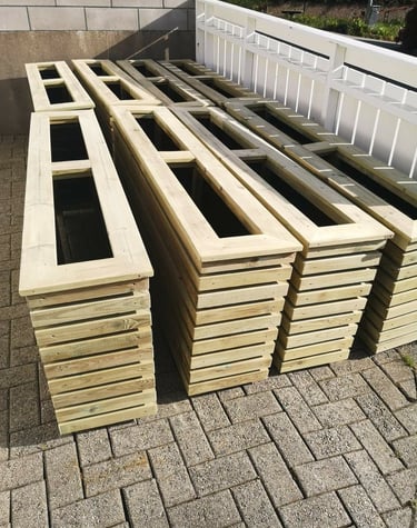 Kjempefine blomsterkasser og vegg. Godt utført arbeid, god kvalitet og veldig hyggelig snekker med frue . Anbefales om du trenger blomsterkasser og liknende.